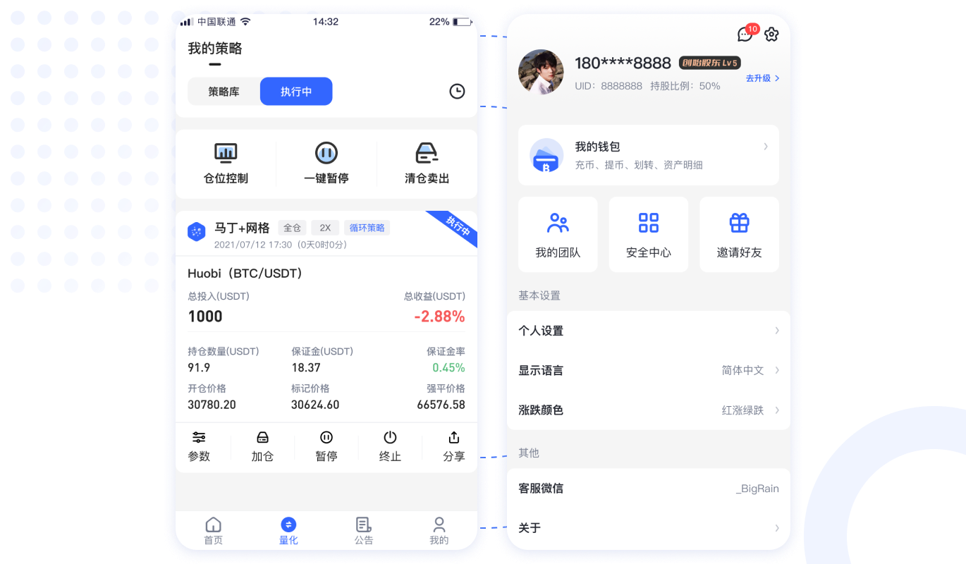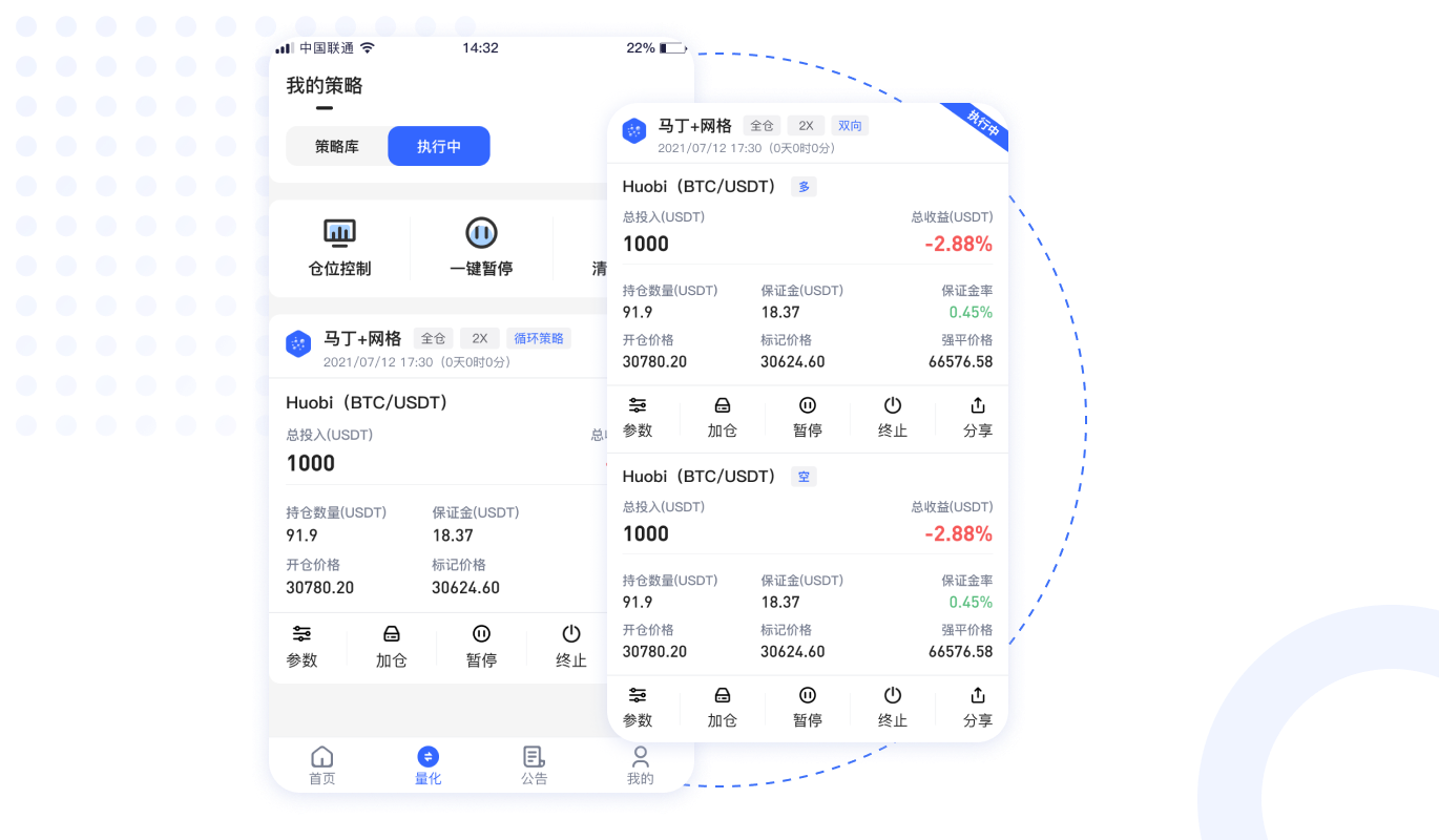 馬丁倍投+網(wǎng)格混合策略、趨勢補(bǔ)倉、尾單補(bǔ)倉、風(fēng)險控制、防瀑布機(jī)制、螺旋式補(bǔ)倉、一鍵補(bǔ)倉,首單加倍。